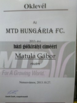 Az idei bajnokság házi gólkirálya Matula Gábor, csapatunk csapatvezető-helyettese lett 20 találattal!